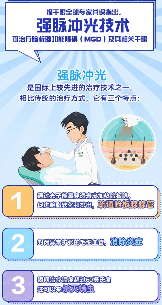 因此,在干眼治疗技术不断推陈出新的时代,缓解了不少干眼星人眼干眼涩的烦恼,强脉冲光(IPL)和热脉动治疗(LipiFlow)作为干眼治疗领域的黑科技,受到了不少患者朋友的喜爱。