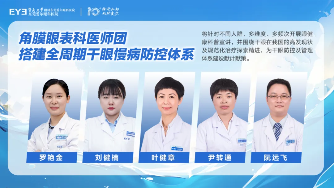 自东莞爱尔眼医院建院以来,设有干眼诊疗专科,该专科由爱尔眼科医院集团角膜病学组委员、爱尔眼科广东省区角膜眼表泪道专业学组组长叶健章主任为学科带头人,与从事眼科临床工作十余年的医师组成一支专业技术团队。
