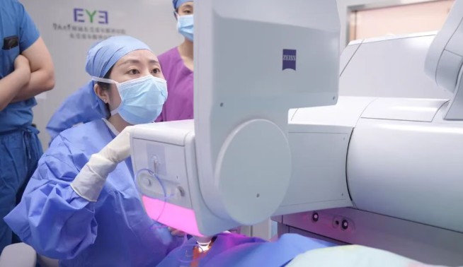 7月18日,东莞爱尔眼科屈光科三位核心专家——世界屈光手术及视觉科学学院会士、爱尔眼科集团屈光手术学组学科带头人、爱尔眼科集团广东省区总院长王铮,广东省医师协会委员、东莞市医学会眼科学分会第四届委员会副主任委员、东莞爱尔眼科医院院长刘斐,全国眼内镜矫治青年专家协作组组员、爱尔眼科集团屈光学组青年协作组副组长、东莞爱尔眼科医院屈光手术专科主任陈晓蓓,成功为四位近视患者实施机器人全飞秒SMILE pro手术。