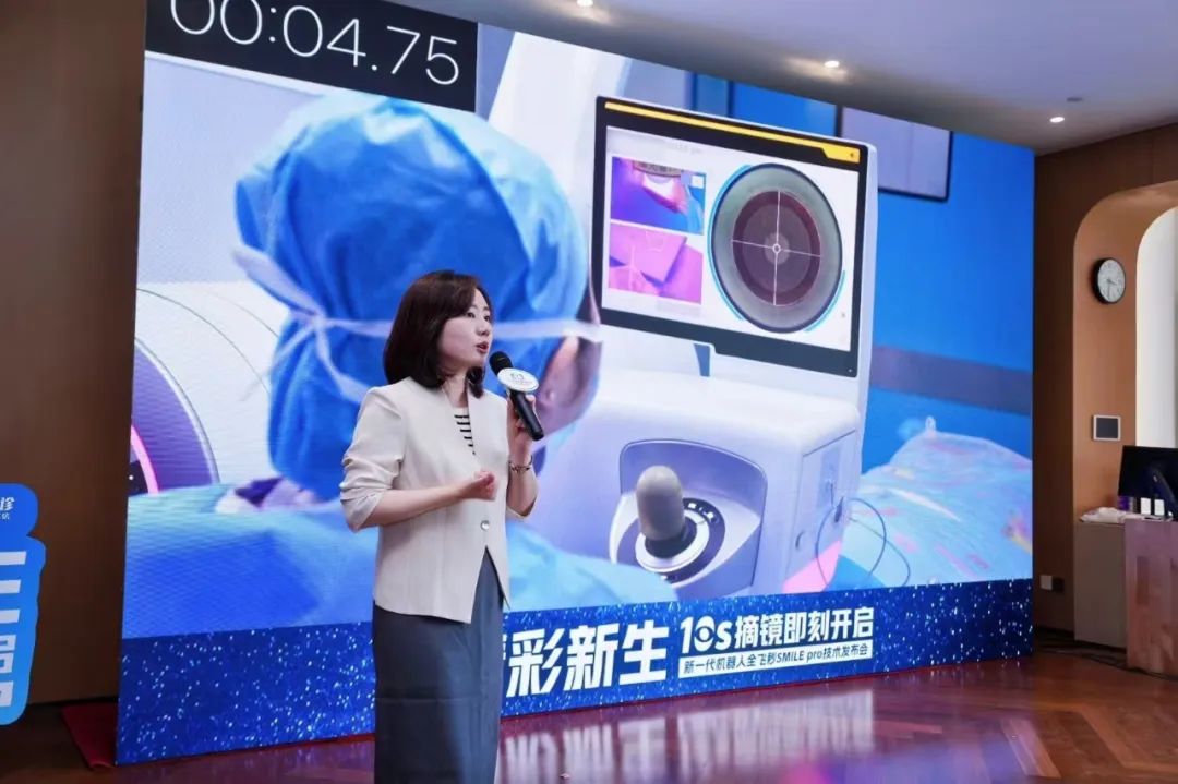 今年7月,东莞爱尔眼科医院成功引进全国首批、东莞首台新一代机器人全飞秒VISUMAX800设备,并顺利开展了东莞首例SMILE pro手术。发布会上,陈晓蓓主任详细解读该技术的核心优势以及应用成果。“近视患者最关心的永远是手术的安全、有效与稳定。机器人全飞秒SMILE pro 在传承全飞秒‘无瓣、微创’优势的基础上,实现了三大技术升级。”陈晓蓓主任介绍,该技术将单眼激光扫描时间从23秒缩短至10秒内,大幅度缩短手术时长;搭配智能双导航系统,能自动识别瞳孔中心并实时校准眼球旋转,让定位精度达到微米级;独创的双机械臂设计提升手术操作灵活度,真正实现“又快又稳”。爱尔眼科集团目前已累计开展SMILE pro手术超3000例,其安全性、稳定性和术后效果得到充分临床验证。